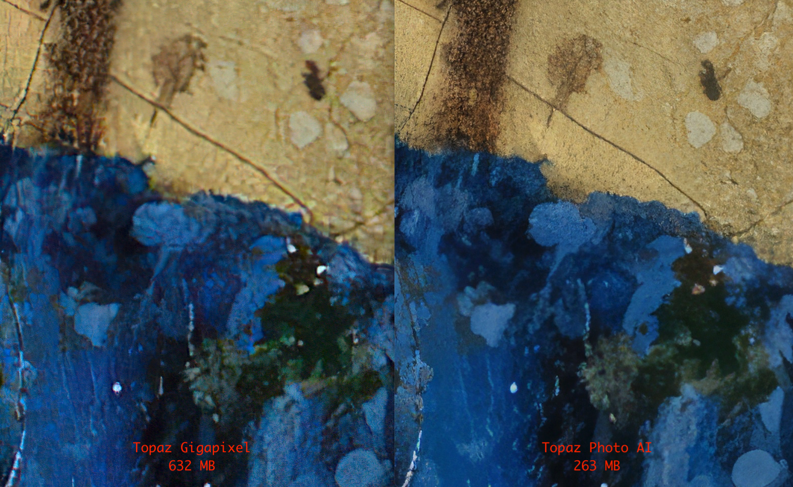 JMLA escribió:De entre los ejemplos que trae Rivaner, vemos que lo mismo ha imaginado textura de piel donde no la había o colocado unos brillitos en un lagrimal que no lucía.